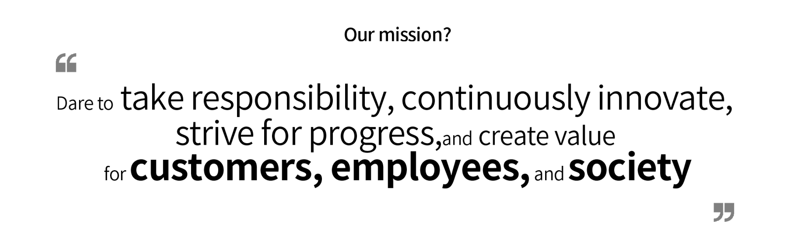 The value of a company lies in responsibility and warmth. We always remember our mission: to build a solid foundation of quality through lean production and create stable and efficient value returns for our customers; Empower every employee with a growth platform, so that every struggle has a response; Feed back into society with industrial strength and use green and energy-saving products to support the sustainable development of the industry.